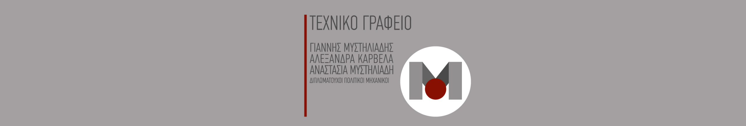 Το τεχνικό γραφείο μας ιδρύθηκε το 1985, στον Αγ. Στέφανο, από τους διπλ. Πολιτικούς Μηχανικούς Ιωάννη Μυστηλιάδη και Αλεξάνδρα Καρβελά. Την σκυτάλη πήρε, από το 2014, και η Αναστασία Μυστηλιάδη, επίσης διπλ. Πολιτικός Μηχανικός, ενώ διατηρούμε σταθερές εσωτερικές και εξωτερικές συνεργασίες με ένα ευρύ δίκτυο μηχανικών, όλων των σχετικών με την οικοδομή ειδικοτήτων. Το γραφείο μας δραστηριοποιείται, κατά κύριο λόγο, στο πεδίο ενός ευρέος φάσματος κτηριακών έργων, δίνοντας έμφαση στον ολοκληρωμένο σχεδιασμό υψηλών απαιτήσεων, την άρτια μελέτη και την αυστηρή και επιμελή επίβλεψη. Παράλληλα, η μεγάλη εμπειρία και η συνεχής ενημέρωση και επιμόρφωση των συντελεστών του γραφείου μας, τόσο σε επιστημονικό, όσο σε νομοθετικό και κατασκευαστικό επίπεδο, καθιστά την ομάδα μας έναν έμπιστο τεχνικό σύμβουλο καθόλη την διάρκεια ζωής ενός έργου αλλά και για την αξιολόγηση και αναβάθμιση της ακίνητης περιουσίας.